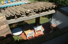 Casa señorial ideal para primera o segunda residencias. Requeriria algunas reformas en baños y cocina especialmente si se usa como primera residencia, aunque funciona perfectamente en el estado actual como segunda residencia. La casa se desarrolla alrededor de una grande y generosa escalera central. en la planta sotano esta la sala de maquinas y un garage, en la planta principal una gran cocina y un gran salón con chimenea en dos niveles, todo ello comunicado a diferentes terrazas. y patios que comunican con el jardin. Casi todas las estancias de la casa disponen de terraza. La casa dispone de 5 habitaciones, 4 de ellas de grandes dimensiones en suite con baño y terraza individual cada una. El magnifico terreno esta totalmente ajardinado y esta directamente situado sobre el campo de golf, y tiene una gran piscina. La situación de la casa es muy buena, en la parte baja de la Urbanización cerca de la casa club.